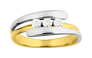 Bague trilogie OR JAUNE ET BLANC AVEC 3 zirconium